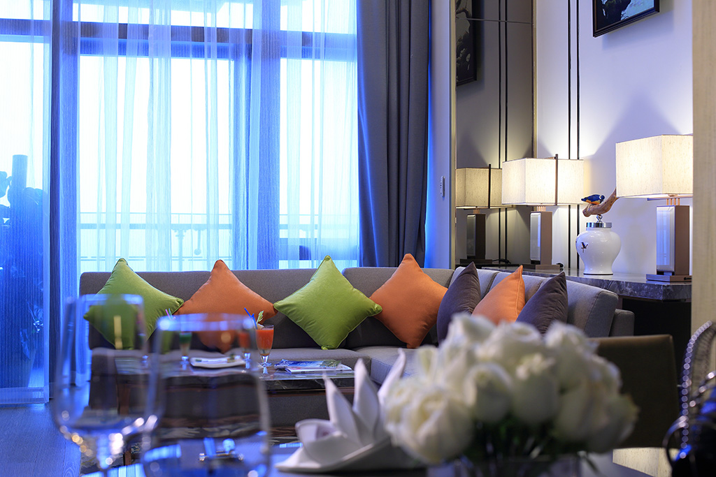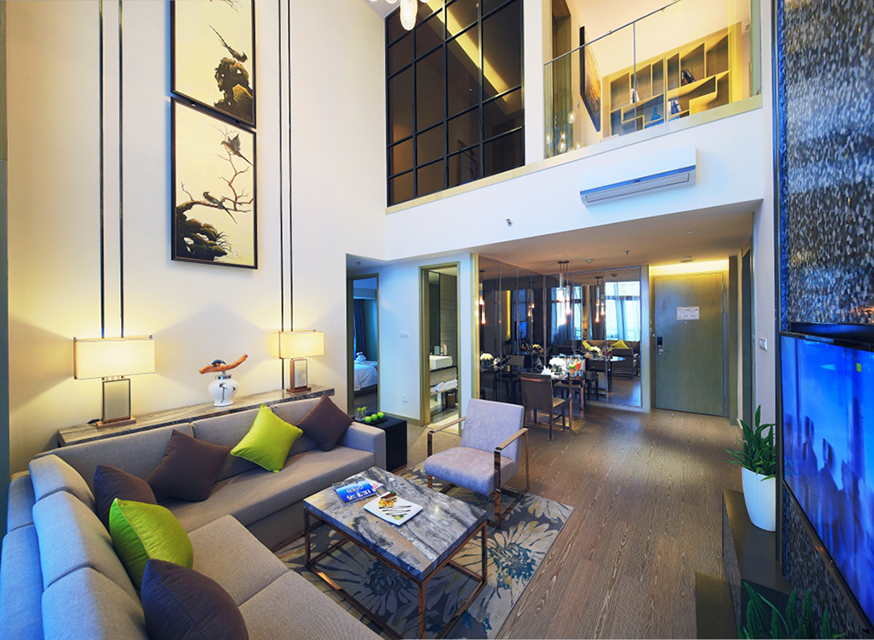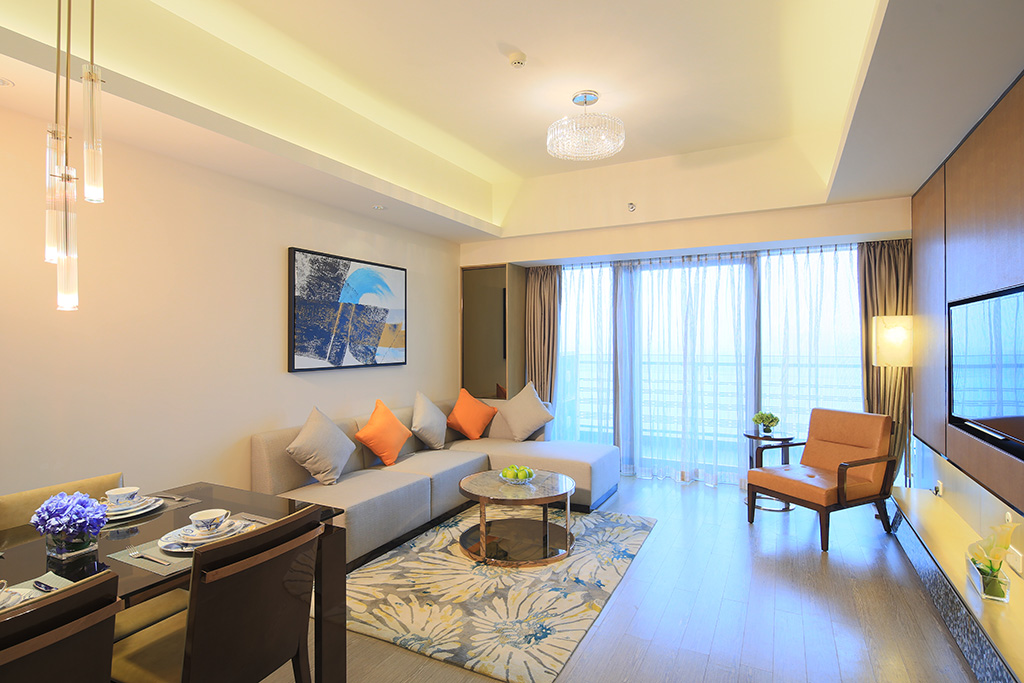 華發(fā)·會展行政公寓由威爾遜公司設(shè)計,簡約舒適,現(xiàn)代的設(shè)計風(fēng)格營造時尚旅居氣質(zhì)。樓高28層,總建筑面積5.6萬㎡,擁有48㎡至190㎡的標(biāo)準(zhǔn)房、套房和復(fù)式等六種房型共450間/套??头烤吧?,按高星級酒店標(biāo)準(zhǔn)配置,有超大戶外陽臺,步入式衣帽間,廚房設(shè)施齊備,功能齊全,是平衡工作與生活的理想之所,體驗輕松和諧的溫馨之家。是華發(fā)第一家自有品牌酒店,也是珠海目前房型最多、房量最大、設(shè)計及配套最前衛(wèi)的頂級公寓酒店。
