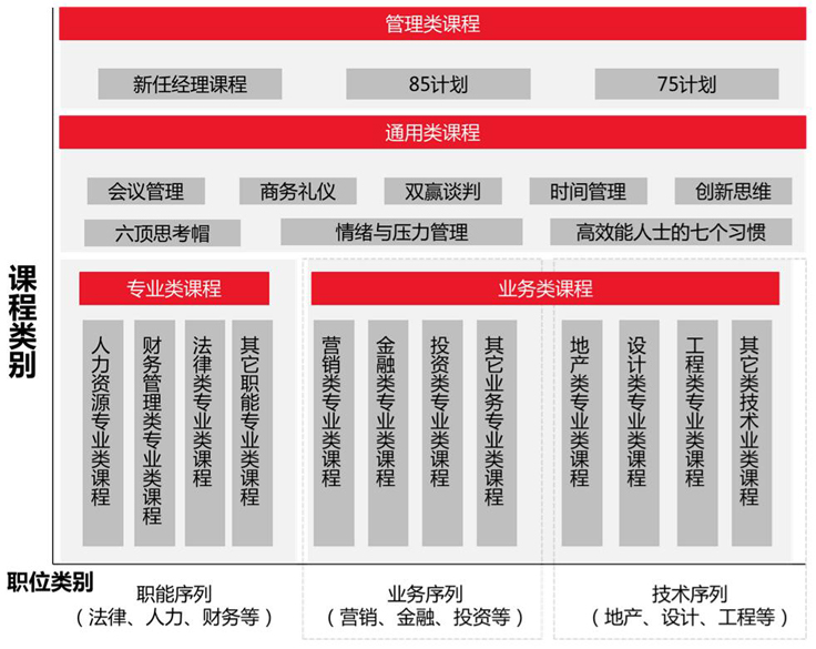 華發(fā)集團(tuán)近年來一直在加大課程體系的建設(shè)。為了更科學(xué)、規(guī)范地設(shè)計員工各項技能的培訓(xùn),華發(fā)集團(tuán)結(jié)合員工的職業(yè)發(fā)展通道,已經(jīng)初步建立一整套課程體系,并針對典型崗位制訂學(xué)習(xí)地圖,提高培訓(xùn)課程的系統(tǒng)性和針對性。隨著互聯(lián)網(wǎng)+時代的到來,華發(fā)集團(tuán)特別組織內(nèi)部講師和技術(shù)業(yè)務(wù)專家,開發(fā)了一批高質(zhì)量的微課,進(jìn)一步豐富了集團(tuán)的課程資源?,F(xiàn)已形成了包括管理、通用、專業(yè)、業(yè)務(wù)四大課程類別,覆蓋集團(tuán)幾乎所有的崗位的課程體系,為員工的技能提升提供了路徑指引和資源支持。