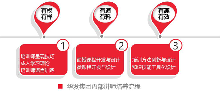 華發(fā)集團(tuán)擁有一支專業(yè)素質(zhì)高、授課技能強(qiáng)的內(nèi)部講師隊伍,他們承擔(dān)了越來越多的內(nèi)部課程講授與特色課程開發(fā)的重任,在企業(yè)培訓(xùn)中扮演著非常重要的角色。集團(tuán)鼓勵員工分享、傳遞知識,并專門為有志于傳道解惑、成為公司知識傳播者的員工提供了標(biāo)準(zhǔn)化的內(nèi)部講師培養(yǎng)體系。員工接受了系統(tǒng)化的講師培養(yǎng)訓(xùn)練后,可參加公司統(tǒng)一組織的講師認(rèn)證流程,并最終成為企業(yè)內(nèi)部講師,參與授課實踐活動,以實現(xiàn)自己的個人價值,拓寬職業(yè)發(fā)展路徑。